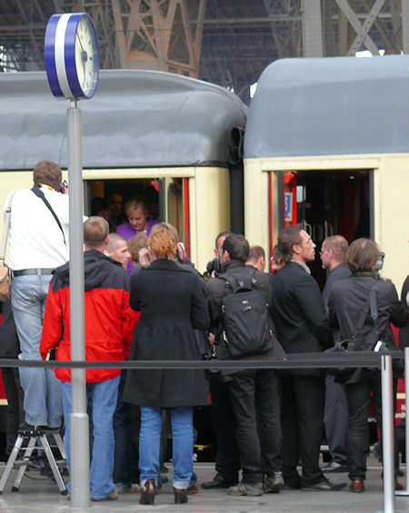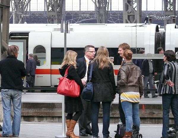 Warten auf den Rheingold Express - gemeinsam mit Generalsekretär Michael Kretschmer Die Kanzlerin ist eingetroffen Fußweg durch die City Leipzigs Interview im Zeitgeschichtlichen Forum - die Kanzlerin freut sich über den schnellen Abschluß der Koalitionsverhandlung mit der FDP in Sachsen Gespräch mit Libeth Wehrhan-Adenauer, der Tochter von Konrad Adenauer Gute Wünsche von den Leipzigern |