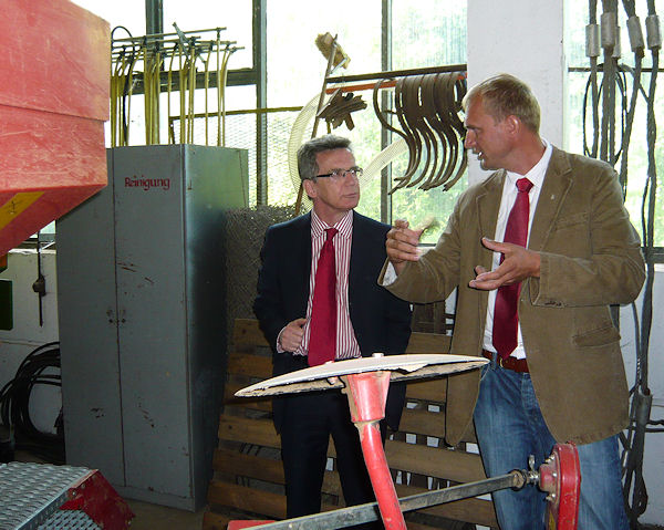 v.l.n.r. Dr. Jens-Christian Vaupel(Stationsleitung der DSV-Saatzuchtstation Leutewitz), Karin Strempel MdL, Thomas Haubold (Betriebsleiter am Standort Leutewitz), Bundesminister Dr. Thomas de Maizière, Christoph Lüdecke(Vorstand Dt. Saatveredelung AG), Bürgermeister Uwe Klingor |