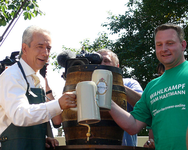 Ein herzlich Willkommen auch für Altministerpräsident Prof. Kurt Biedenkopf Grußwort eines "Orangen" unter "Grünen" ?? Faßbieranstich durch Stanislaw Tillich mit Unterstützung durch den Landtagskandidaten Christian Hartmann Fachsimpeln mit Dr. Matthias Rößler MdL |