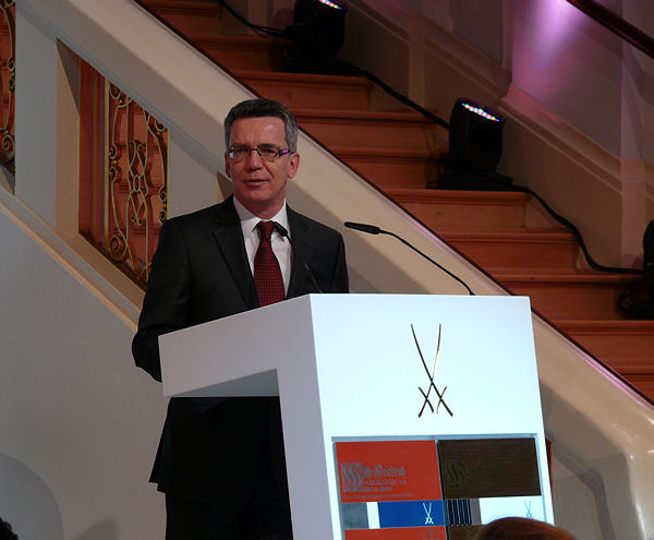 | Auszug aus dem Grußwort: "...was für eine bessere Brücke zwischen den Nationen der Welt kann es geben als die Kunst – heute und hier in der Form der Porzellankunst. Die Sonderausstellung: Alle Nationen willkommen – All Nations are Welcome MEISSEN® ist ein wunderbares Zeichen für das, was hier in Meißen in den letzten 300 Jahren geleistet wurde. Eine Ausstellung, die zeigt wie das Meißner Porzellan von Anfang an auch in der Welt bekannt und beliebt wurde. Die Meißner Schwerter sind ein Markenzeichen für Sachsen und für Deutschland in der Welt. Vielleicht haben Sie auch die Angewohnheit, bei besonders schönem Porzellan die Tasse mal rumzudrehen, um zu sehen, welcher Stempel darunter ist – schön, wenn man die Schwerter sieht...." |