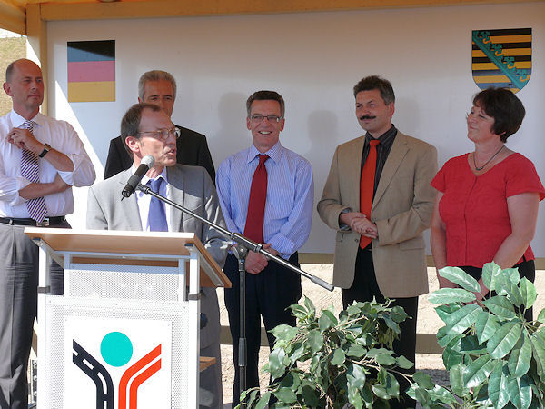 Bundesminister Wolfgang Tiefensee, Ministerpräsident Stanislaw Tillich, Bundesminister Thomas de Maizière,Landrat Arndt Steinbach, Oberbürgermeisterin Gerti Töpfer |
